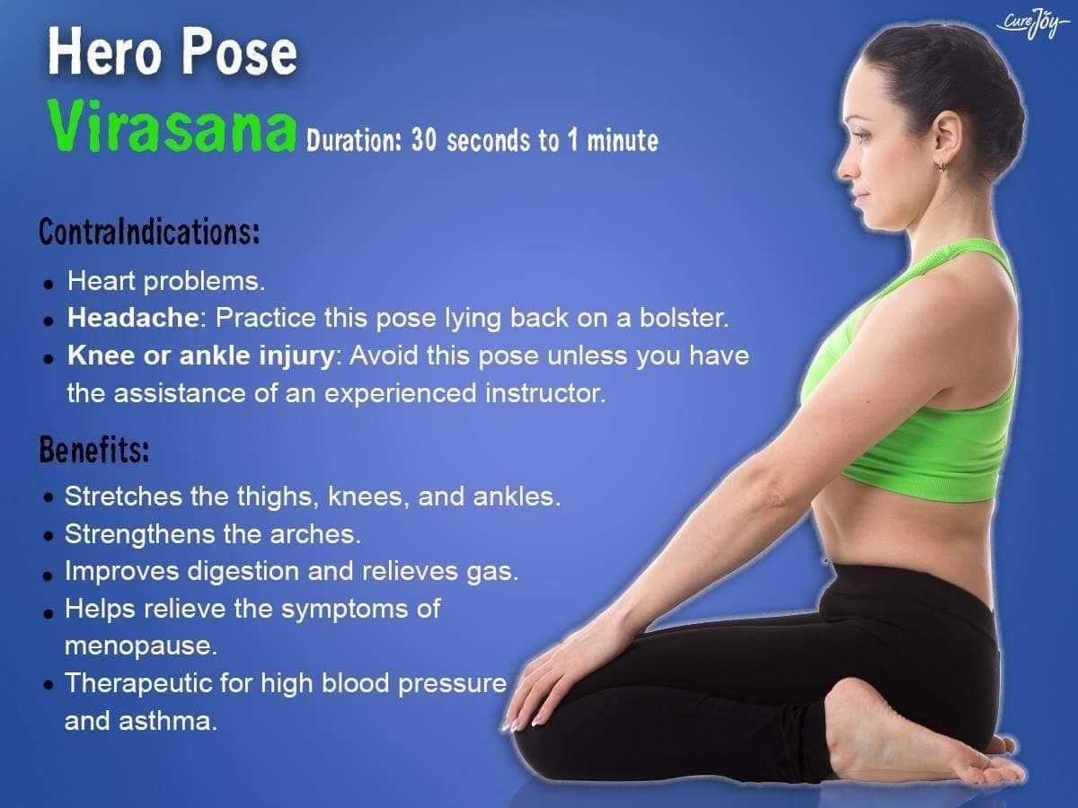 Hero the Virasana yoga is an ancient form of yoga that helps to restore energy balance in the body and promote overall relaxation. By combining gentle stretching and breathing exercises, this practice can alleviate tension in the body and ease stress, while enhancing circulation and energy flow. It is also beneficial in releasing toxins, improving the immune system, aiding digestion, and stimulating mental and emotional balance. Additionally, Virasana yoga is a powerful tool for healing back pain, as it strengthens the muscles in the lower back and abdomen and supports the spine. Finally, Virasana is an excellent practice for all levels of practitioners, offering poses that can be customized to fit individual needs.